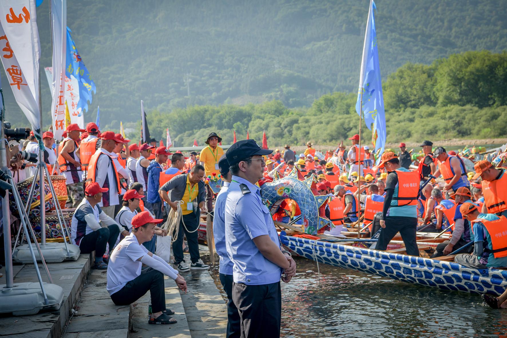 5月30日,2025“正山堂·涇上紅”杯龍舟賽在安徽省涇縣桃花潭鎮(zhèn)鳴鑼開賽。涇縣公安局出動150余名警力,護航比賽安全有序舉行。
