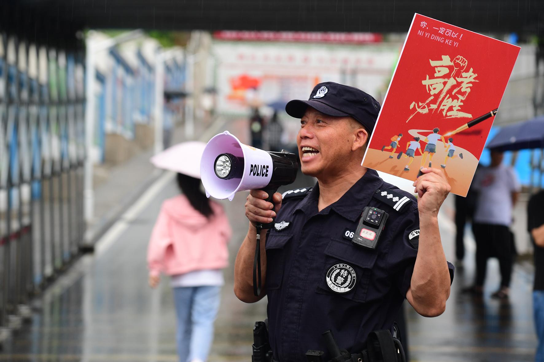 6月7日,安徽省馬鞍山市和縣公安局民警在和縣第一中學(xué)考點(diǎn)維護(hù)秩序。