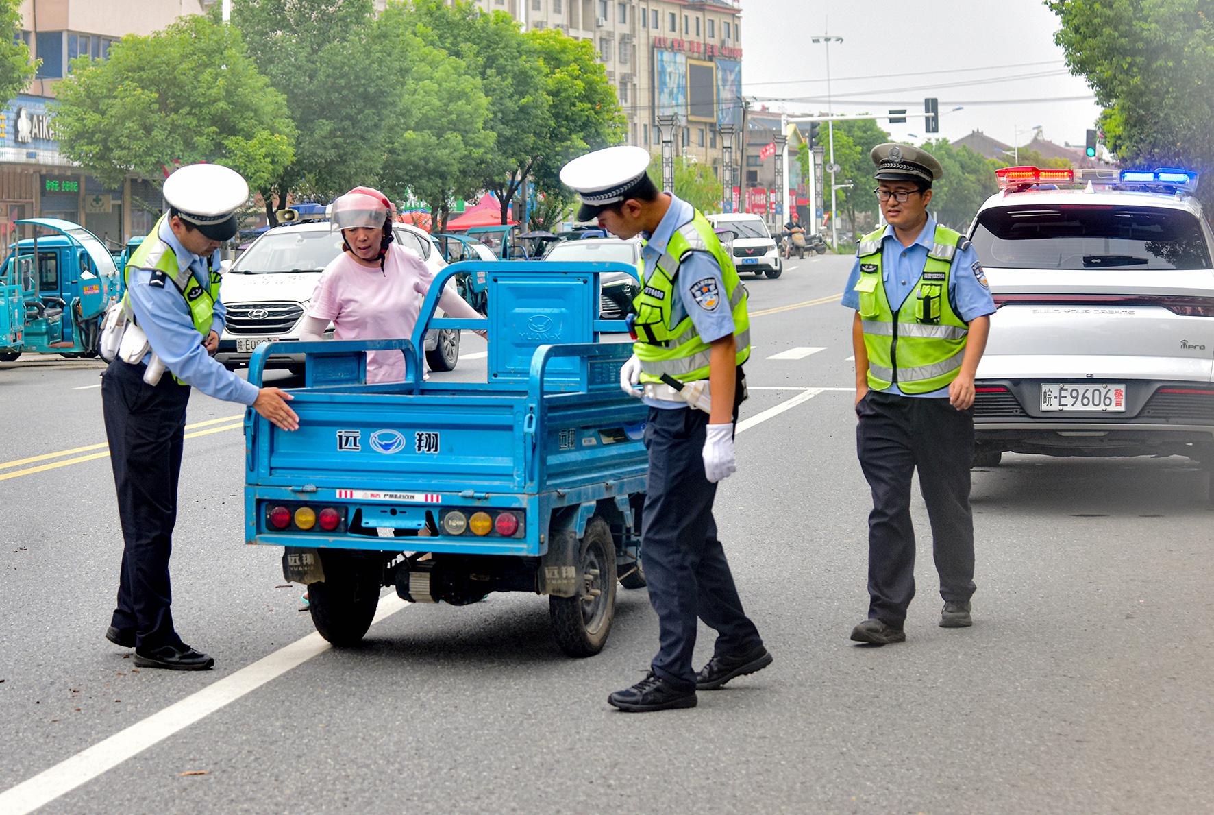 8月13日,安徽省馬鞍山市含山縣公安局交管大隊清溪中隊組織民警在轄區(qū)主要路口、車流量較大路段,對電動車騎乘人員未佩戴安全頭盔、不按規(guī)定車道行駛、違規(guī)安裝車棚等交通違法行為進(jìn)行現(xiàn)場教育與勸導(dǎo)。
