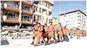 圖為2月14日,中國救援隊與中國香港特區(qū)救援隊聯(lián)合編組在土耳其哈塔伊省安塔基亞市開展救援工作。 新華社發(fā)