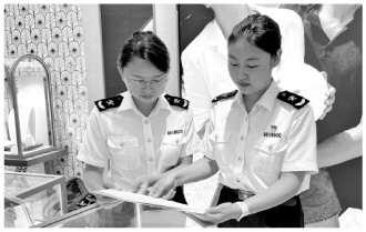 圖為海口海關(guān)所屬三亞海關(guān)關(guān)員在三亞海旅免稅城進(jìn)行免稅品盤點(diǎn)。 本報(bào)記者 翟小功 攝