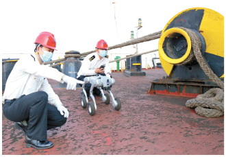 近日,南京海關(guān)所屬揚(yáng)州海關(guān)聯(lián)合杭州宇樹科技有限公司探索輪足式機(jī)器人在入出境船舶智慧查驗(yàn)領(lǐng)域應(yīng)用,并首次上船嘗試開展相關(guān)查驗(yàn)。通過深度融合人工智能與機(jī)器人技術(shù),加快推進(jìn)?;分悄茏R(shí)別系統(tǒng)與檢疫處理效能評(píng)估體系建設(shè),為實(shí)現(xiàn)海關(guān)業(yè)務(wù)流程優(yōu)化再造、監(jiān)管作業(yè)全面升級(jí)提供更多優(yōu)質(zhì)方案。圖為海關(guān)關(guān)員在船舶甲板測(cè)試“機(jī)器狗”機(jī)動(dòng)性和通過性。