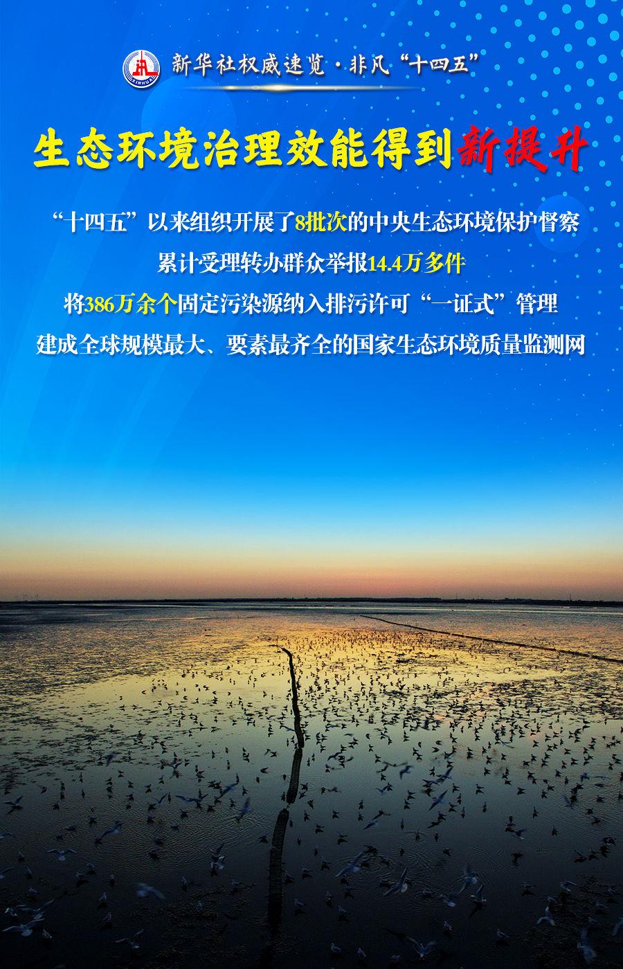 “十四五”時期,我國生態(tài)文明建設(shè)和生態(tài)環(huán)境保護(hù)工作取得重大成效。19日舉行的“高質(zhì)量完成‘十四五’規(guī)劃”發(fā)布會上,生態(tài)環(huán)境部部長黃潤秋用“五個新”概括了“美麗中國”建設(shè)取得的新進(jìn)展、新成就。跟隨海報,一起了解。