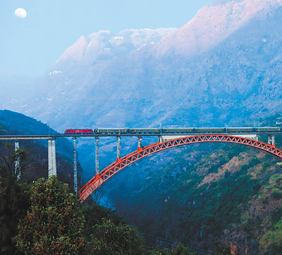 烏蒙山深處的北盤江大橋上,6081次公益慢火車駛過。葉傳增 楊永全攝影報道