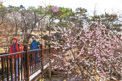 張宇介紹,蟒山景區(qū)森林步道有五條分支,連接成網(wǎng)。既有林間小道,也有木棧道、石臺(tái)階棧道等。游客可以沿著山脊,欣賞十三陵水庫和明十三陵風(fēng)景,同時(shí)還可以穿越林海,感受大自然的獨(dú)特魅力。她說,“蟒山景區(qū)森林步道全長(zhǎng)約14公里,有的路段比較平坦,適合親子家庭踏春賞景;有的路段山勢(shì)陡峭,適合戶外運(yùn)動(dòng)愛好者去攀登探索。此外,公園將其中一條分支開辟為車行道,游客可以把車開到半山腰,路途比較平坦,為游客登山提供了便利?!睋?jù)北京市園林綠化局國(guó)有林場(chǎng)和種苗管理處處長(zhǎng)曾小莉介紹,今年本市將在5家國(guó)有林場(chǎng)推出總長(zhǎng)度約100公里的森林步道,吸引更多市民游客體驗(yàn)森林旅游,感受生態(tài)之美。