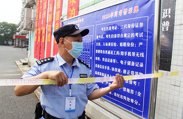 “考試結(jié)束,請考生停止作答?!?月9日上午11時許,隨著考場鈴聲響起,2022年高考最后一場考試結(jié)束了。在護(hù)送學(xué)生和家長有序離開后,老吳也用汗水和堅(jiān)守交出了從警生涯最后一次護(hù)航高考的平安答卷。