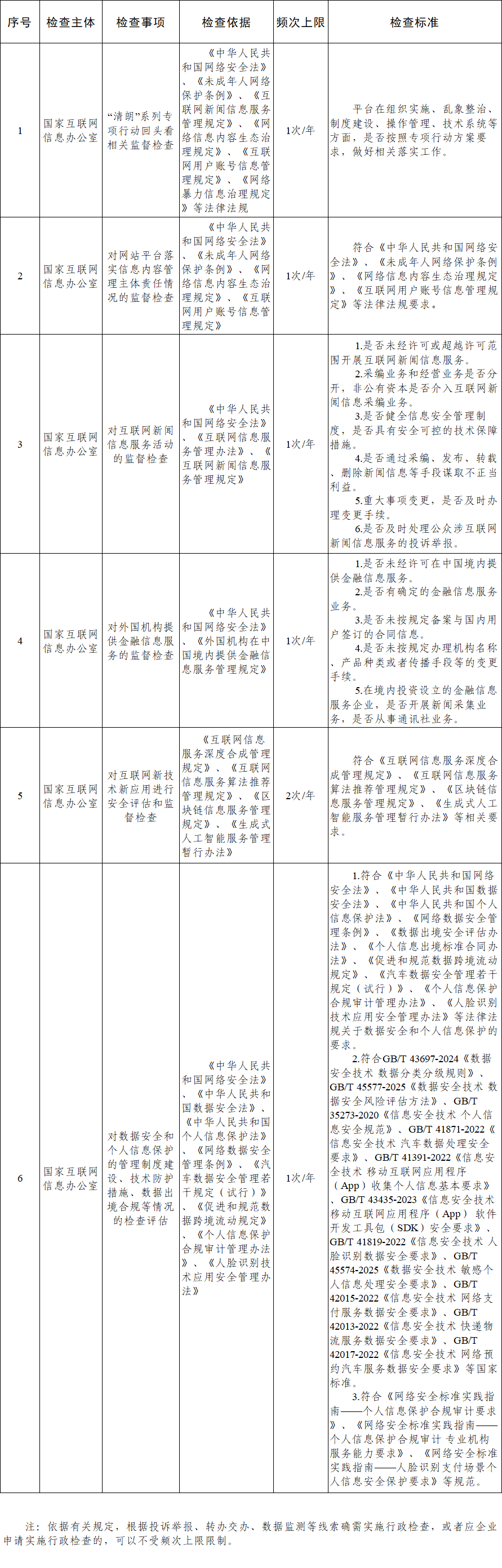 國家互聯(lián)網(wǎng)信息辦公室涉企行政檢查事項(xiàng)清單