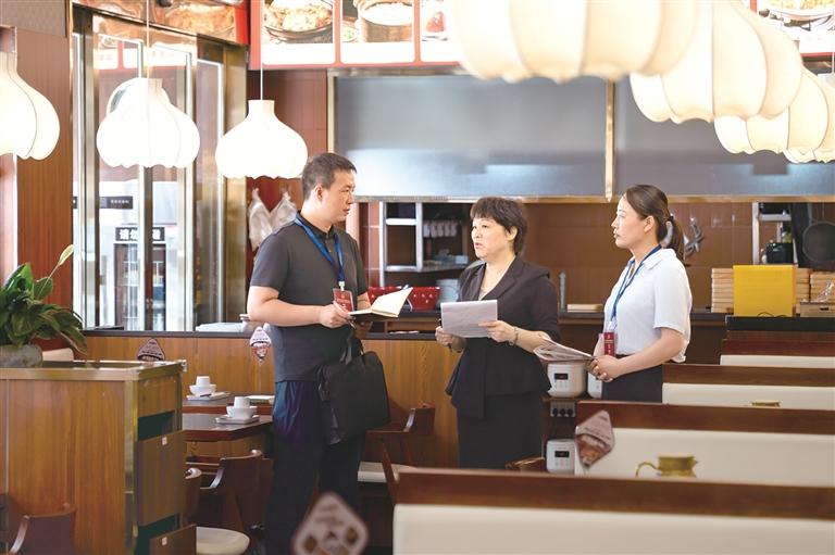 河南省漯河市郾城區(qū)紀(jì)委監(jiān)委圍繞公款吃喝、違規(guī)接受管理服務(wù)對(duì)象宴請(qǐng)等違反中央八項(xiàng)規(guī)定精神問題開展監(jiān)督檢查,一嚴(yán)到底狠剎歪風(fēng)邪氣。圖為近日,該區(qū)紀(jì)檢監(jiān)察干部在轄區(qū)某飯店了解相關(guān)情況。王曉 攝