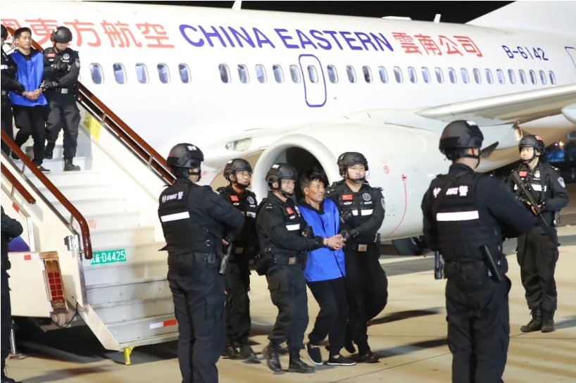 2024年1月30日,在緬甸內(nèi)比都國際機(jī)場,緬甸警方依法向我公安機(jī)關(guān)移交緬北重大犯罪嫌疑人劉正祥。張建鑫 攝