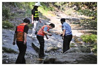 10月13日,廿三里派出所民警帶領(lǐng)生態(tài)義警在華溪森林公園開展巡邏時,生態(tài)義警小鄭不小心滑倒在水潭中,濕了全身,但他一臉輕松,連說“沒事,沒事”。