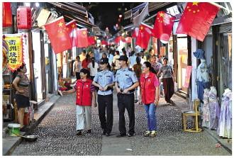 10月13日晚,佛堂派出所民警帶領(lǐng)“萬善義警隊”隊員在佛堂老街景區(qū)開展巡邏執(zhí)勤,并向群眾宣傳安全防范知識。