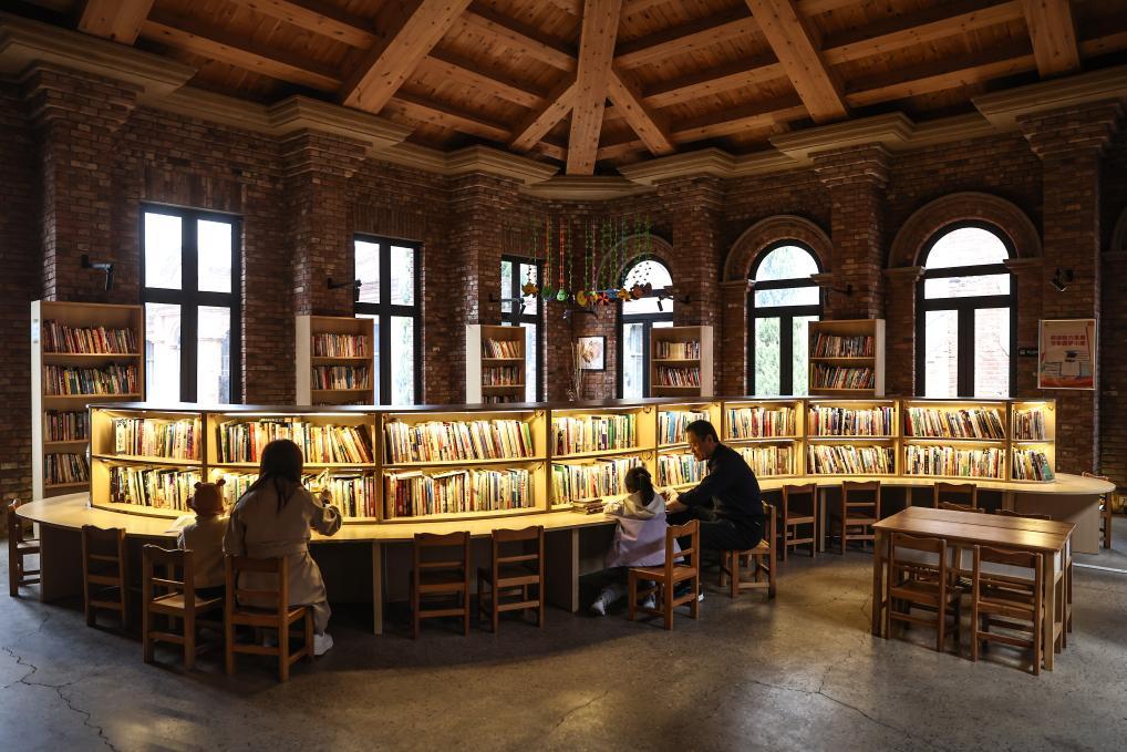 4月17日,小朋友在家長的陪同下在沈陽市鐵西區(qū)奉天工場(chǎng)文創(chuàng)園內(nèi)的城市書房內(nèi)讀書。新華社記者 潘昱龍 攝