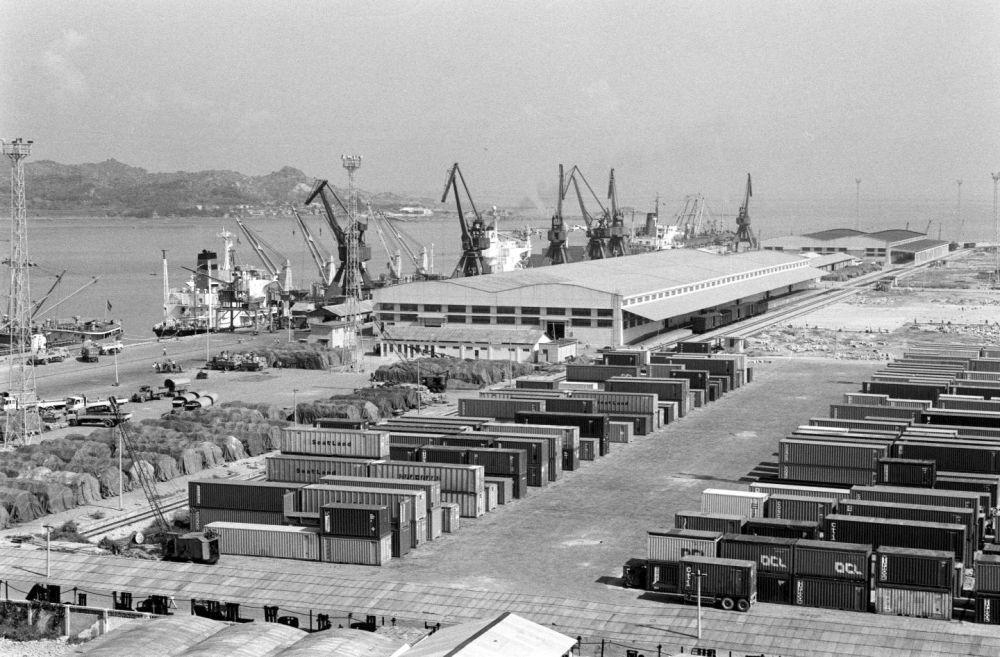 這是廈門經(jīng)濟(jì)特區(qū)東渡碼頭集裝箱碼頭(1985年攝)。新華社記者 顧新生 攝