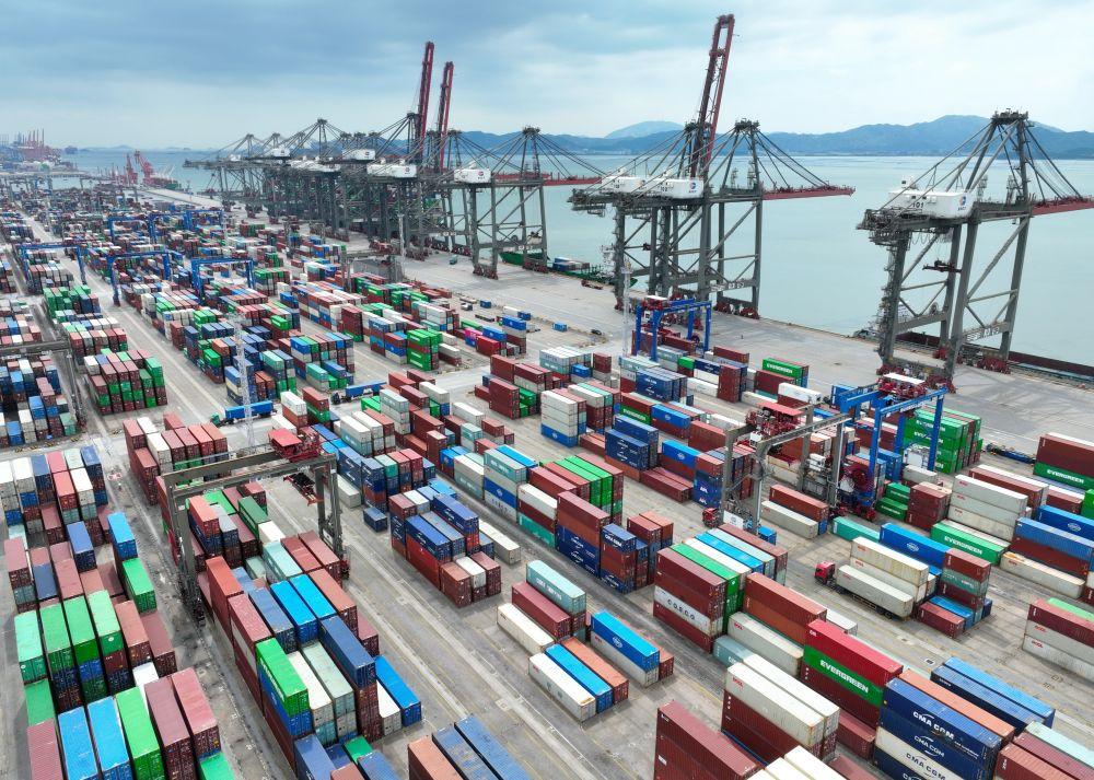 這是2024年10月15日拍攝的中國(福建)自由貿(mào)易試驗(yàn)區(qū)廈門片區(qū)集裝箱碼頭(無人機(jī)照片)。新華社記者 姜克紅 攝
