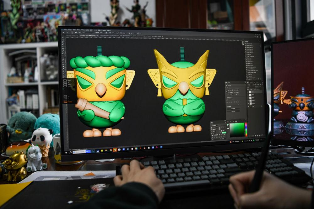 2025年3月1日,文創(chuàng)產(chǎn)品策劃運(yùn)營師曾舟在位于四川成都的辦公室內(nèi)完善文創(chuàng)產(chǎn)品細(xì)節(jié)。他以三星堆青銅神樹、青銅縱目面具、青銅獸面等文物為創(chuàng)作藍(lán)本,結(jié)合潮玩元素設(shè)計(jì)的文創(chuàng)作品廣受歡迎?!拔蚁胱龅牟皇峭婢呖煜?,而是有內(nèi)容、有溫度、有意義的文化IP,讓年輕一代隨手摸到沉淀千年的文化?!痹壅f。