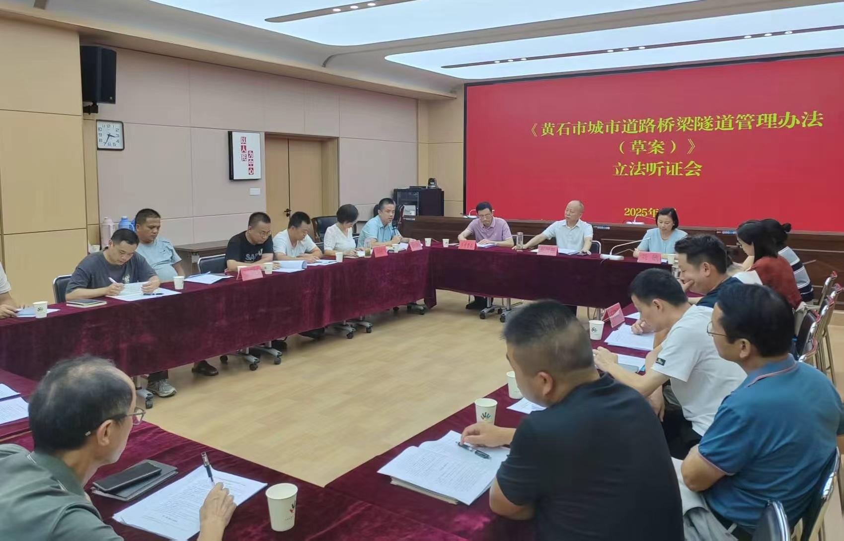 圖為《黃石市城市道路橋梁隧道管理辦法(草案)》立法聽證會(huì)現(xiàn)場。