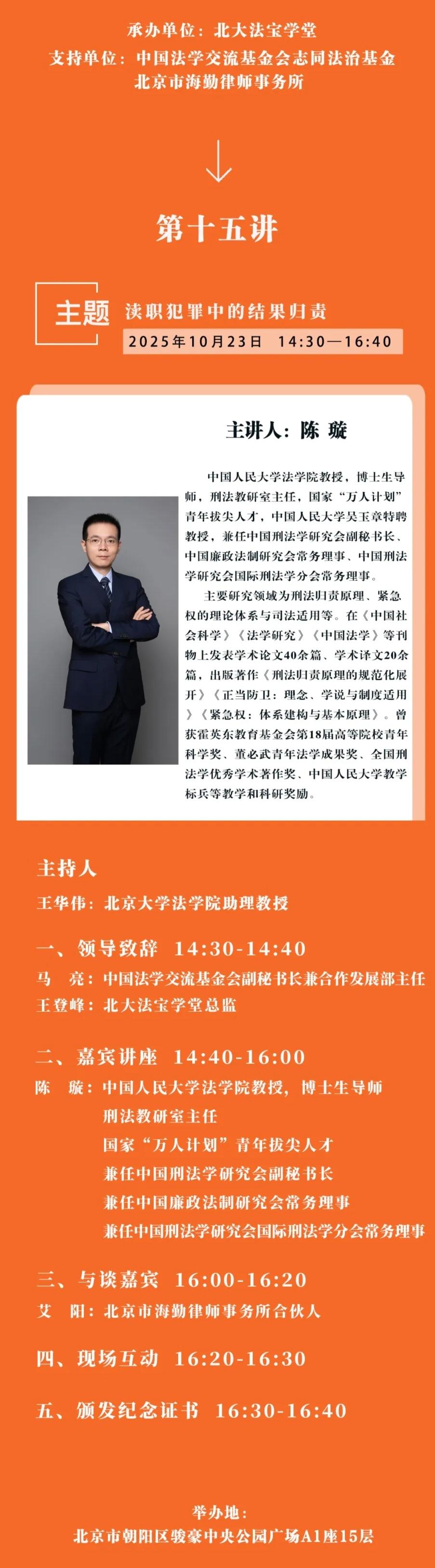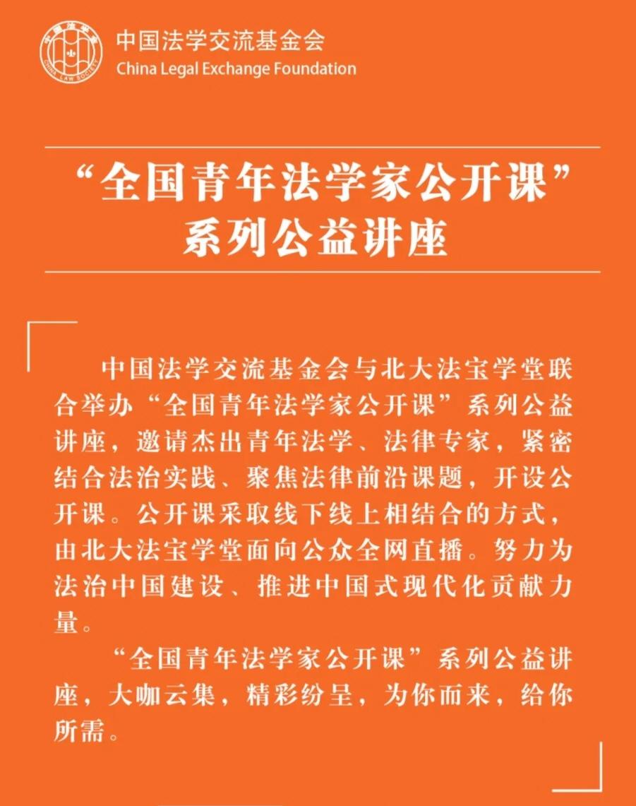 “全國青年法學家公開課”系列公益講座第十五講將于10月23日舉辦