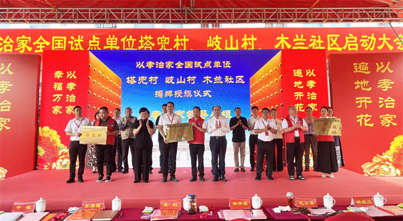 以孝治家領(lǐng)導(dǎo)小組為三個(gè)試點(diǎn)單位授牌