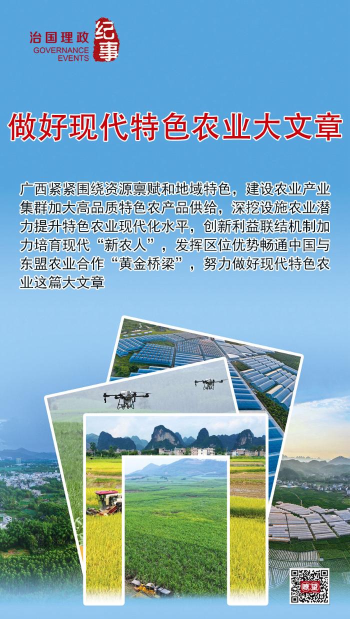 ◇廣西緊緊圍繞資源稟賦和地域特色,建設(shè)農(nóng)業(yè)產(chǎn)業(yè)集群加大高品質(zhì)特色農(nóng)產(chǎn)品供給,深挖設(shè)施農(nóng)業(yè)潛力提升特色農(nóng)業(yè)現(xiàn)代化水平,創(chuàng)新利益聯(lián)結(jié)機(jī)制加力培育現(xiàn)代“新農(nóng)人”,發(fā)揮區(qū)位優(yōu)勢(shì)暢通中國(guó)與東盟農(nóng)業(yè)合作“黃金橋梁”,努力做好現(xiàn)代特色農(nóng)業(yè)這篇大文章。