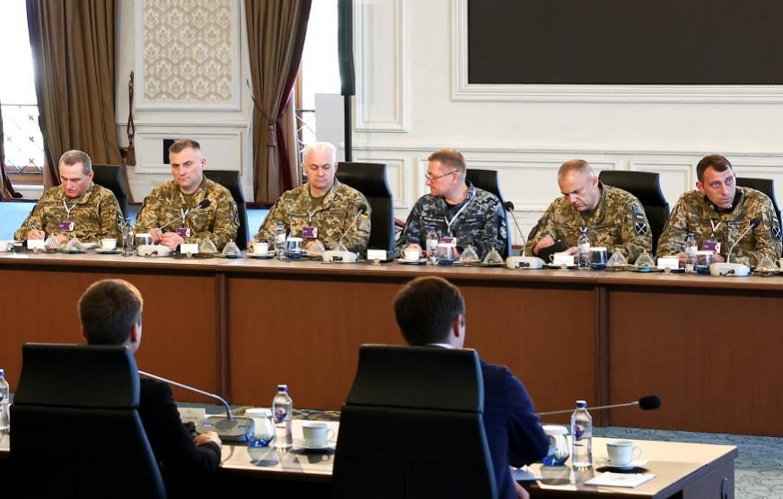 圖為當?shù)貢r間2025年6月2日,土耳其伊斯坦布爾,烏克蘭軍事官員出席在奇拉甘宮舉行的俄烏新一輪談判。 CFP供圖