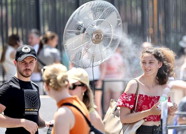 受“熱穹頂”影響,6月以來(lái),乃至進(jìn)入7月,極端高溫天氣席卷北半球多國(guó)。圖為6月27日,在意大利羅馬,游客在斗獸場(chǎng)附近一處風(fēng)扇下納涼。 新華社記者 李京 攝
