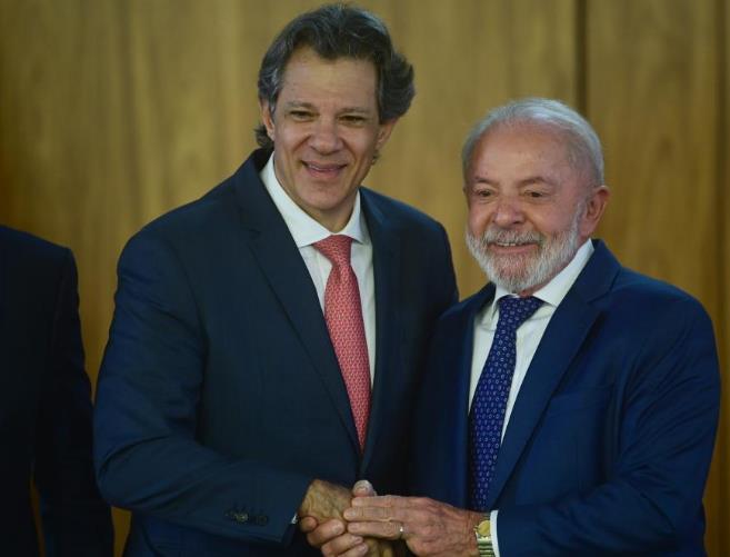 8月13日,在巴西首都巴西利亞舉行的“巴西主權(quán)計劃”啟動儀式上,巴西總統(tǒng)盧拉(右)和巴西財政部長費爾南多·阿達(dá)握手。新華社發(fā)(盧西奧·塔沃拉攝)