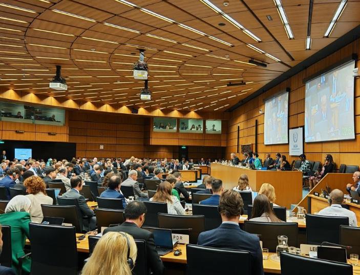 9月10日在奧地利維也納拍攝的國(guó)際原子能機(jī)構(gòu)理事會(huì)會(huì)議現(xiàn)場(chǎng)。新華社發(fā)(中國(guó)常駐維也納聯(lián)合國(guó)代表團(tuán)供圖)