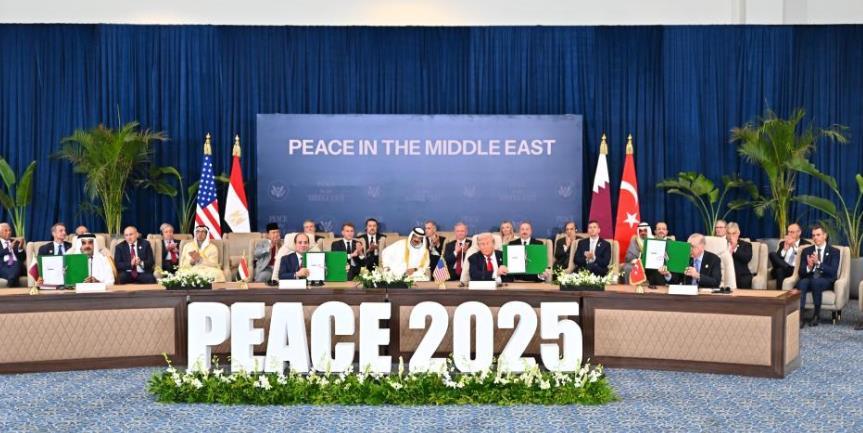 多個國家和國際組織領導人13日晚在埃及紅海海濱城市沙姆沙伊赫舉行峰會,聚焦加沙地帶停火第一階段。埃及、美國、土耳其和卡塔爾領導人簽署一份文件,為?;饏f(xié)議提供擔保。