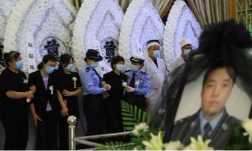 時值仲夏,通往陜西省興平市殯儀館道路兩旁站滿了戰(zhàn)友和群眾,送別民警陳勇。