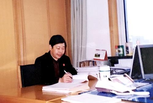 圖為李慶軍生前在辦公室的工作照片(資料照片)。圖片來源:新華社