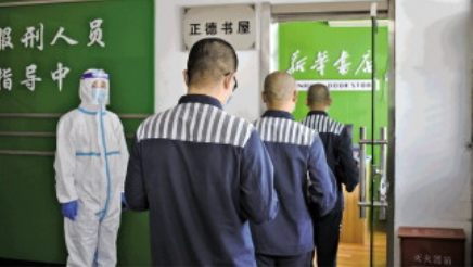 圖為鄧甲龍(左一)組織罪犯購(gòu)書(shū)。 受訪者供圖