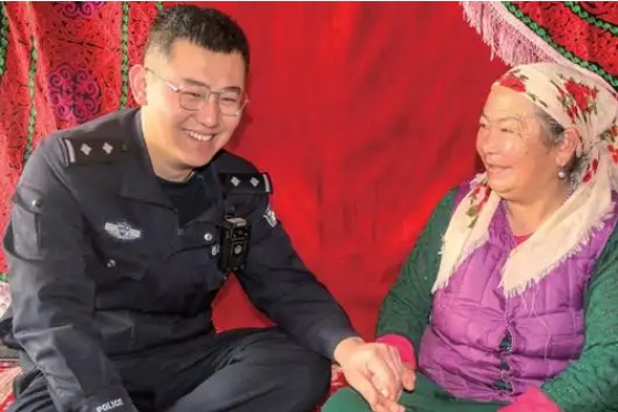 李玉桐是新疆克州邊境管理支隊喀拉布拉克邊境派出所哈拉布拉克村警務(wù)室警長,1994年3月出生的他才30歲,卻已然滿頭白發(fā),被當(dāng)?shù)厝罕娪H切的稱為“白發(fā)警長”。
