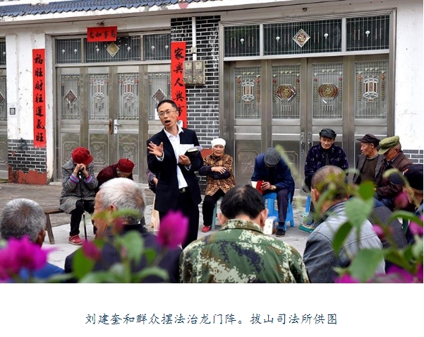 開展基層工作10余年,劉建奎早已和群眾打成一片,“有法律難題就找劉所長?!边@句話如今已成為拔山鎮(zhèn)群眾的共識。