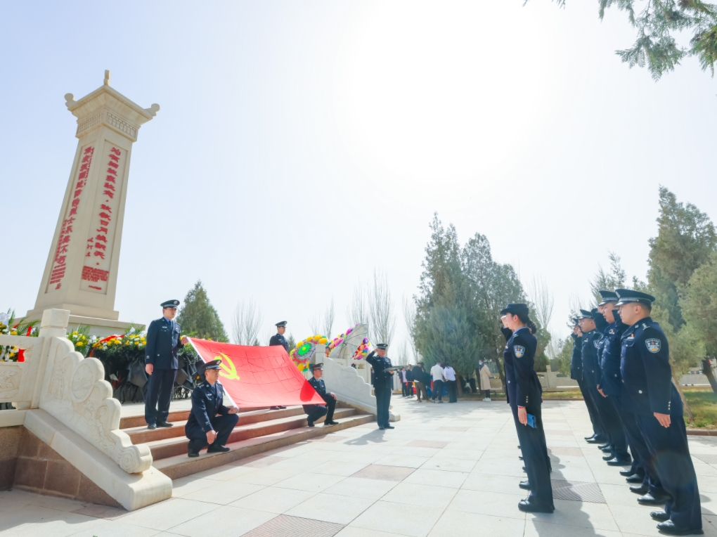 4月2日,新疆喀什邊境管理支隊組織民警前往疏勒縣烈士陵園祭奠英烈。民警懷著無限哀思獻花、掃墓、向英雄紀念碑敬獻鮮花,寄托對烈士的崇敬和思念。