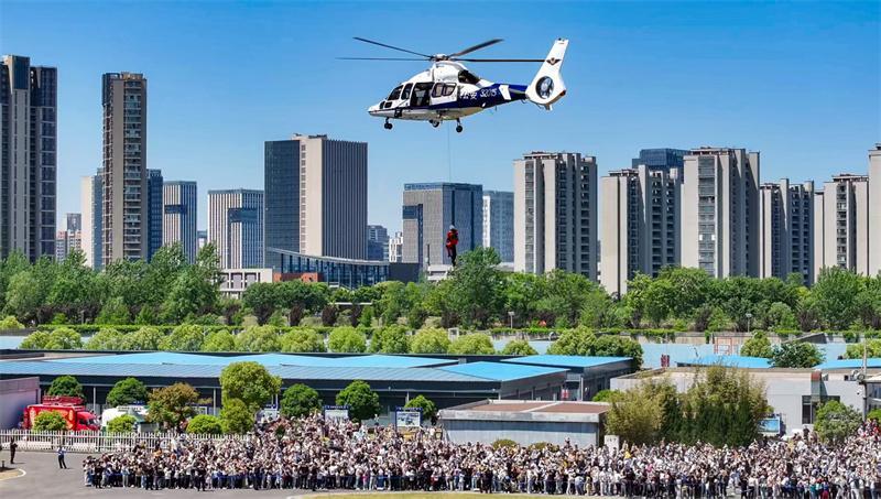 南京公安警營(yíng)開(kāi)放活動(dòng)現(xiàn)場(chǎng)直升機(jī)索降表演