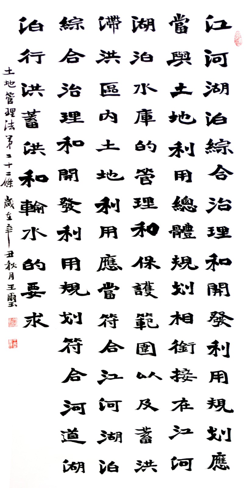 繼1600余位書法家參與書寫《中華人民共和國民法典》全部1260條法條之后,法治日報(bào)社聯(lián)合自然資源部法規(guī)司、自然資源部書畫研究會(huì)和北京昌平書法家協(xié)會(huì),將筆端對準(zhǔn)土地管理“一法一條例”,即《中華人民共和國土地管理法》和《中華人民共和國土地管理法實(shí)施條例》。