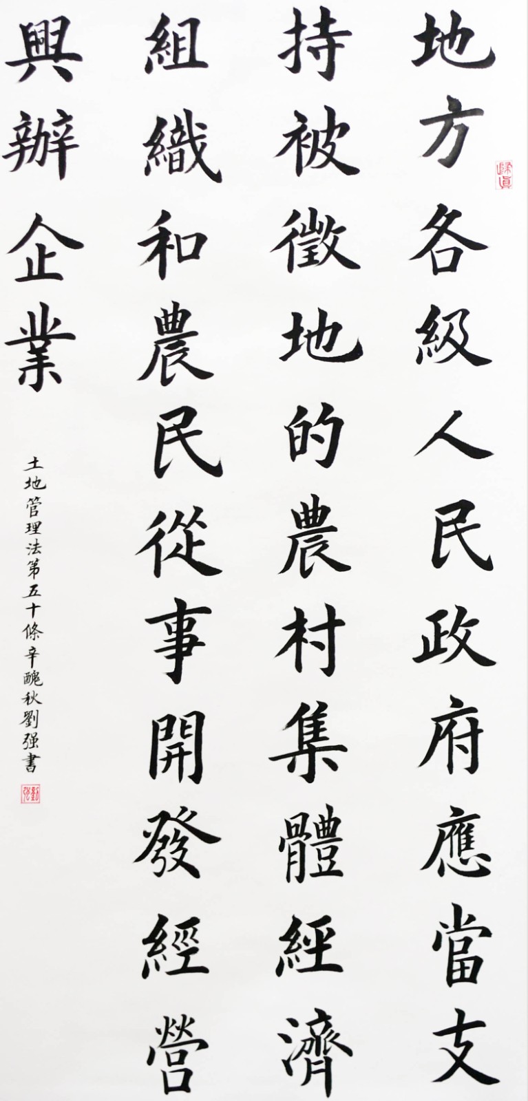 繼1600余位書法家參與書寫《中華人民共和國(guó)民法典》全部1260條法條之后,法治日?qǐng)?bào)社聯(lián)合自然資源部法規(guī)司、自然資源部書畫研究會(huì)和北京昌平書法家協(xié)會(huì),將筆端對(duì)準(zhǔn)土地管理“一法一條例”,即《中華人民共和國(guó)土地管理法》和《中華人民共和國(guó)土地管理法實(shí)施條例》。