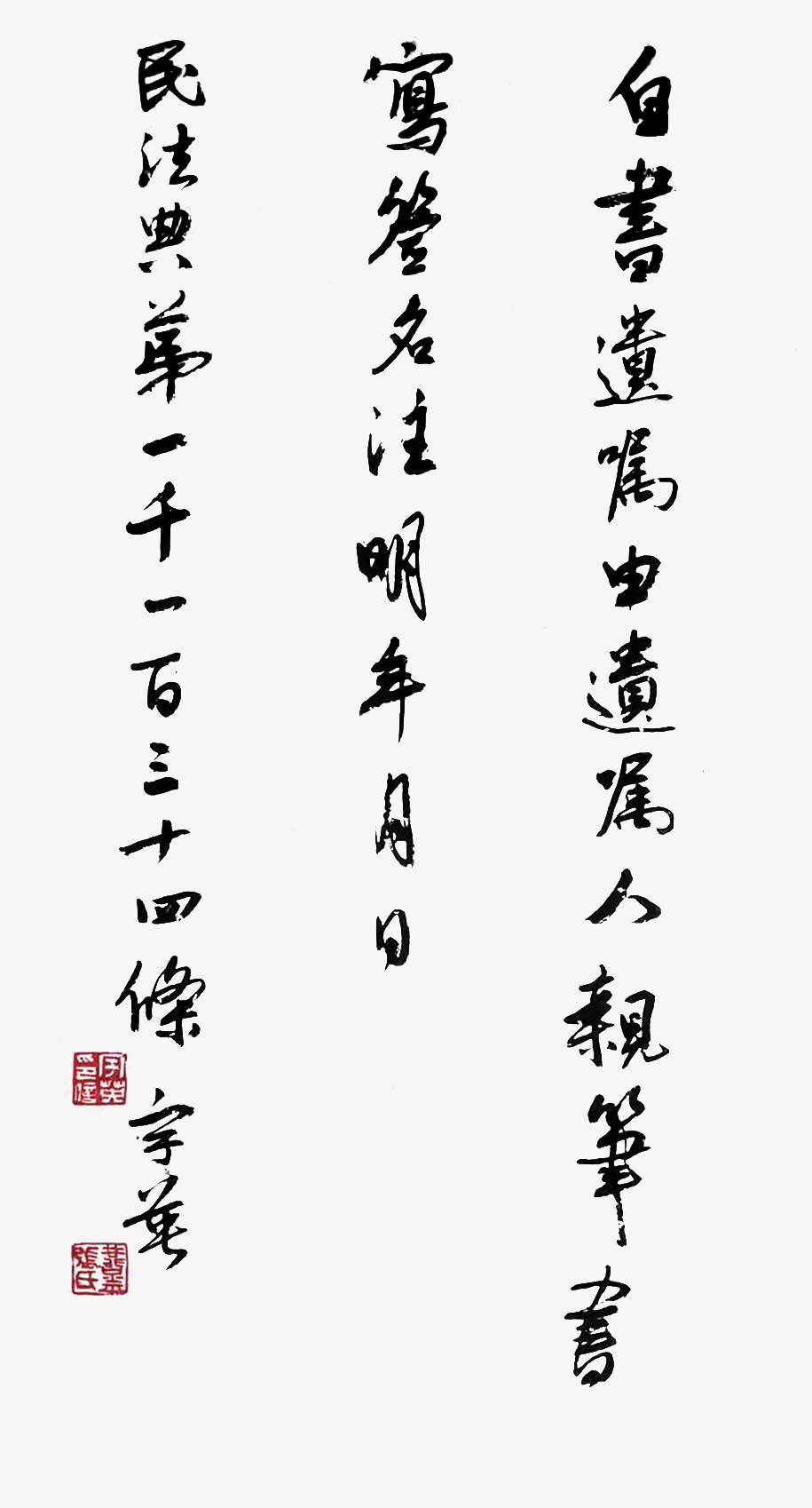 民法典第一千一百三十四條 自書遺囑由遺囑人親筆書寫,簽名,注明年、月、日。