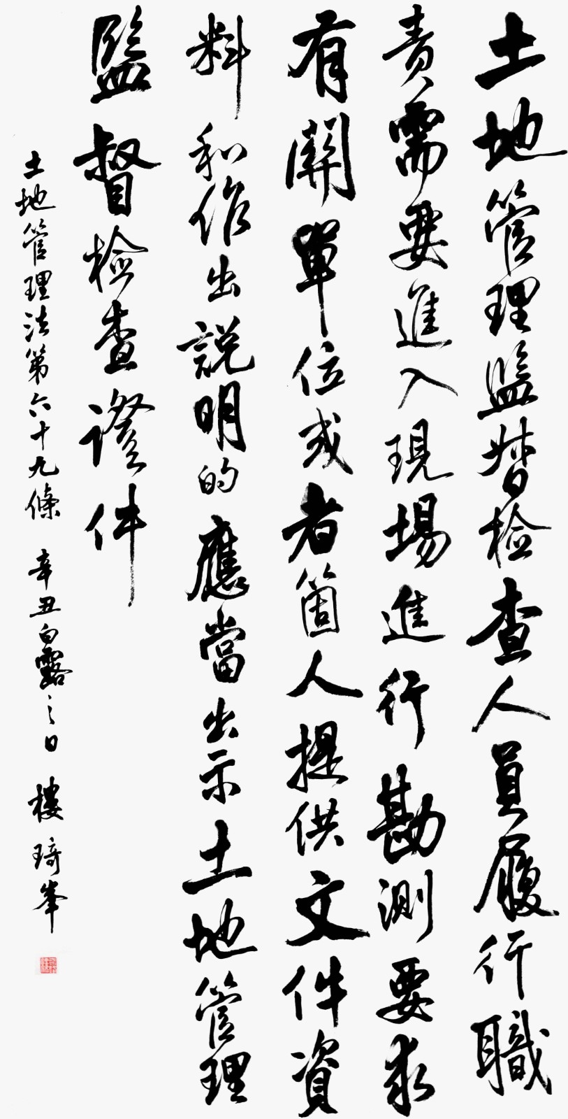 繼1600余位書(shū)法家參與書(shū)寫(xiě)《中華人民共和國(guó)民法典》全部1260條法條之后,法治日?qǐng)?bào)社聯(lián)合自然資源部法規(guī)司、自然資源部書(shū)畫(huà)研究會(huì)和北京昌平書(shū)法家協(xié)會(huì),將筆端對(duì)準(zhǔn)土地管理“一法一條例”,即《中華人民共和國(guó)土地管理法》和《中華人民共和國(guó)土地管理法實(shí)施條例》。