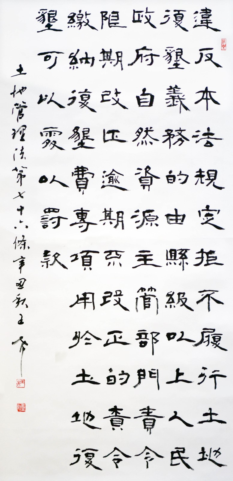 繼1600余位書法家參與書寫《中華人民共和國民法典》全部1260條法條之后,法治日報社聯(lián)合自然資源部法規(guī)司、自然資源部書畫研究會和北京昌平書法家協(xié)會,將筆端對準土地管理“一法一條例”,即《中華人民共和國土地管理法》和《中華人民共和國土地管理法實施條例》。