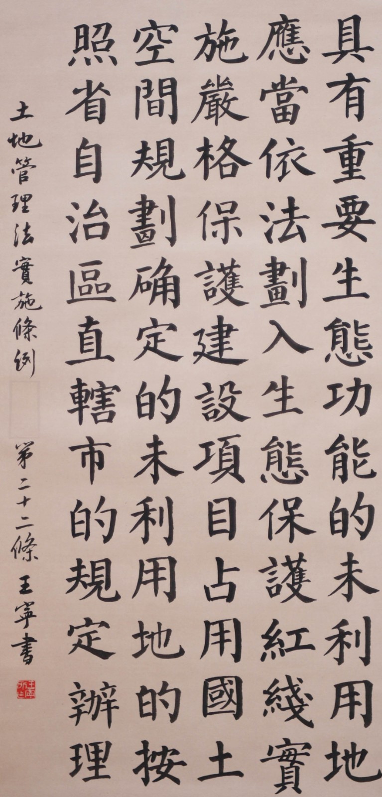 繼1600余位書法家參與書寫《中華人民共和國民法典》全部1260條法條之后,法治日報社聯(lián)合自然資源部法規(guī)司、自然資源部書畫研究會和北京昌平書法家協(xié)會,將筆端對準(zhǔn)土地管理“一法一條例”,即《中華人民共和國土地管理法》和《中華人民共和國土地管理法實施條例》。