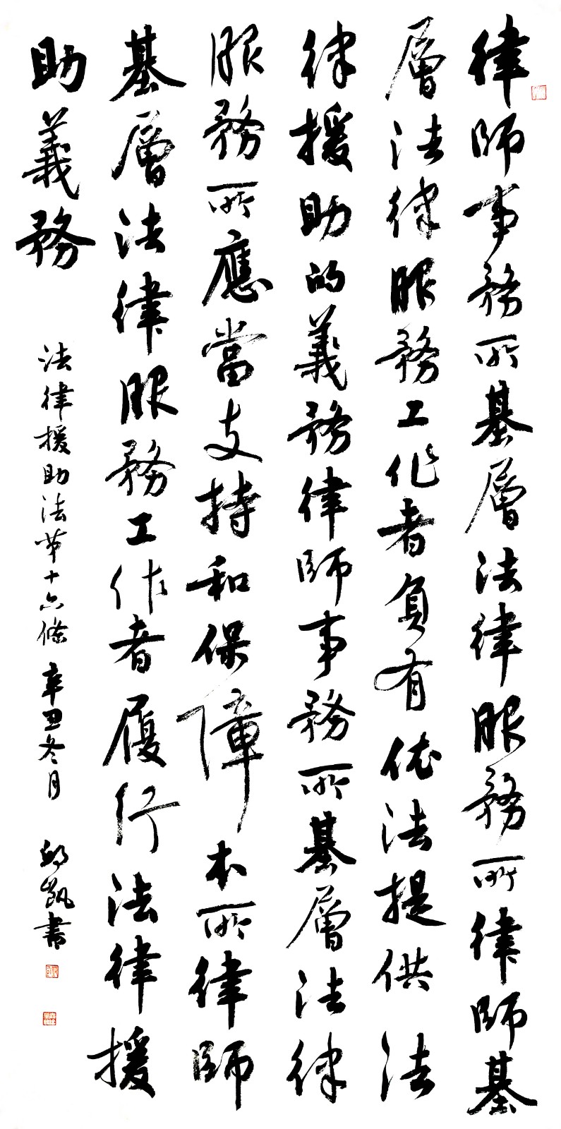 “書·法”活動(dòng)旨在為創(chuàng)新法治宣傳教育,多開一點(diǎn)腦洞、多花一點(diǎn)心思、多出一點(diǎn)力量、多做一點(diǎn)貢獻(xiàn),引領(lǐng)和推動(dòng)更多的人拿起筆來學(xué)法、寫法,在不斷“書·法”過程中,提升自身的法治素養(yǎng),在全社會(huì)弘揚(yáng)法治精神。