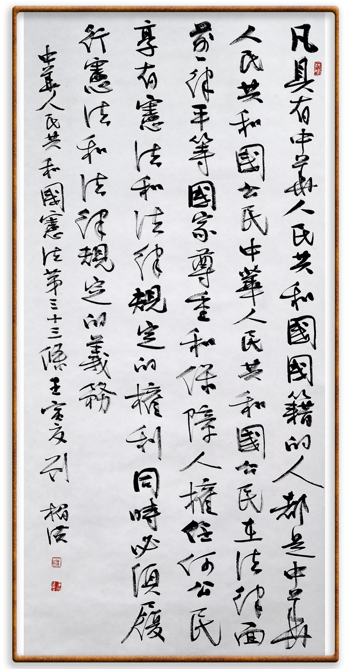 繼《中華人民共和國民法典》《中華人民共和國土地管理法》《中華人民共和國土地管理法實施條例》《中華人民共和國法律援助法》之后,法治日報社聯(lián)合北京市司法局、北京市書法家協(xié)會,將筆端對準(zhǔn)《中華人民共和國憲法》和《中華人民共和國行政處罰法》。