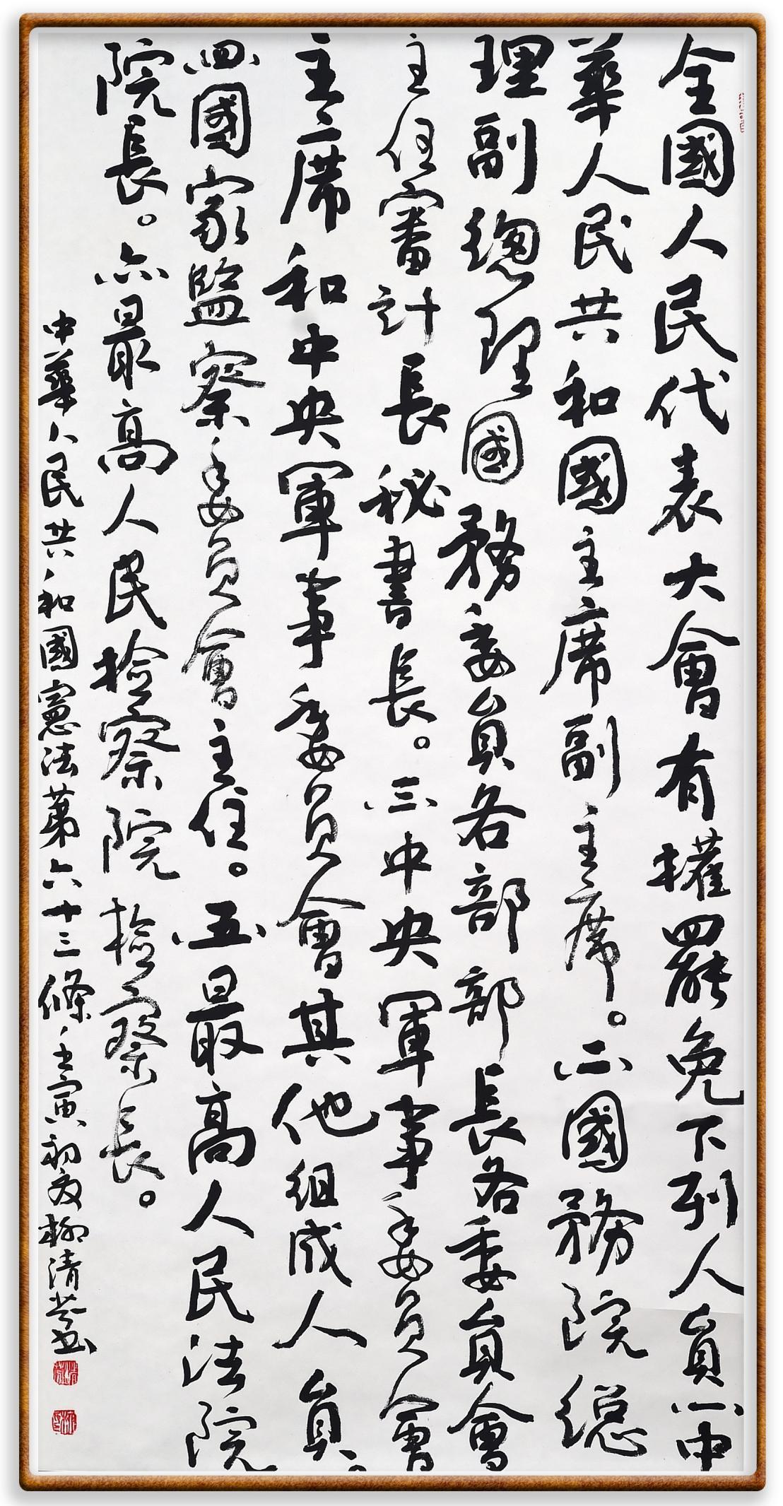 繼《中華人民共和國(guó)民法典》《中華人民共和國(guó)土地管理法》《中華人民共和國(guó)土地管理法實(shí)施條例》《中華人民共和國(guó)法律援助法》之后,法治日?qǐng)?bào)社聯(lián)合北京市司法局、北京書(shū)法家協(xié)會(huì),將筆端對(duì)準(zhǔn)《中華人民共和國(guó)憲法》和《中華人民共和國(guó)行政處罰法》。