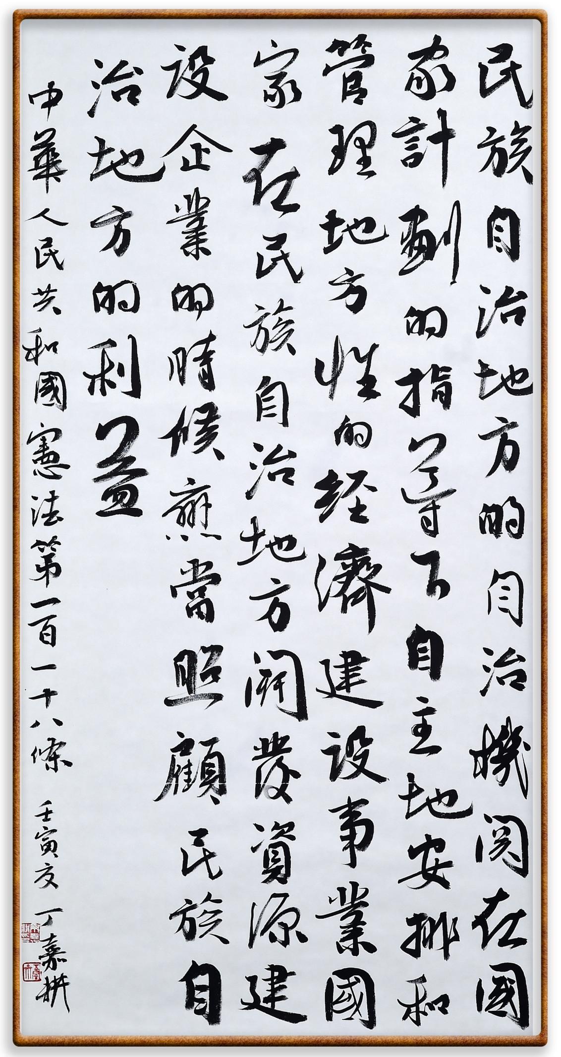 繼《中華人民共和國民法典》《中華人民共和國土地管理法》《中華人民共和國土地管理法實(shí)施條例》《中華人民共和國法律援助法》之后,法治日報(bào)社聯(lián)合北京市司法局、北京書法家協(xié)會(huì),將筆端對準(zhǔn)《中華人民共和國憲法》和《中華人民共和國行政處罰法》。