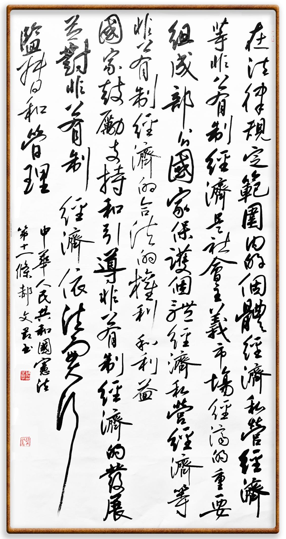 繼《中華人民共和國民法典》《中華人民共和國土地管理法》《中華人民共和國土地管理法實(shí)施條例》《中華人民共和國法律援助法》之后,法治日?qǐng)?bào)社聯(lián)合北京市司法局、北京書法家協(xié)會(huì),將筆端對(duì)準(zhǔn)《中華人民共和國憲法》和《中華人民共和國行政處罰法》。