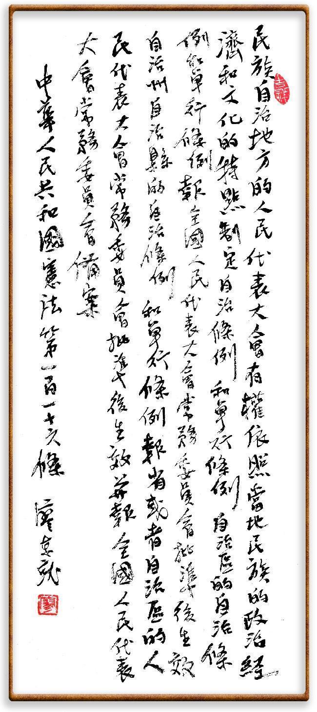 繼《中華人民共和國(guó)民法典》《中華人民共和國(guó)土地管理法》《中華人民共和國(guó)土地管理法實(shí)施條例》《中華人民共和國(guó)法律援助法》之后,法治日?qǐng)?bào)社聯(lián)合北京市司法局、北京書(shū)法家協(xié)會(huì),將筆端對(duì)準(zhǔn)《中華人民共和國(guó)憲法》和《中華人民共和國(guó)行政處罰法》。