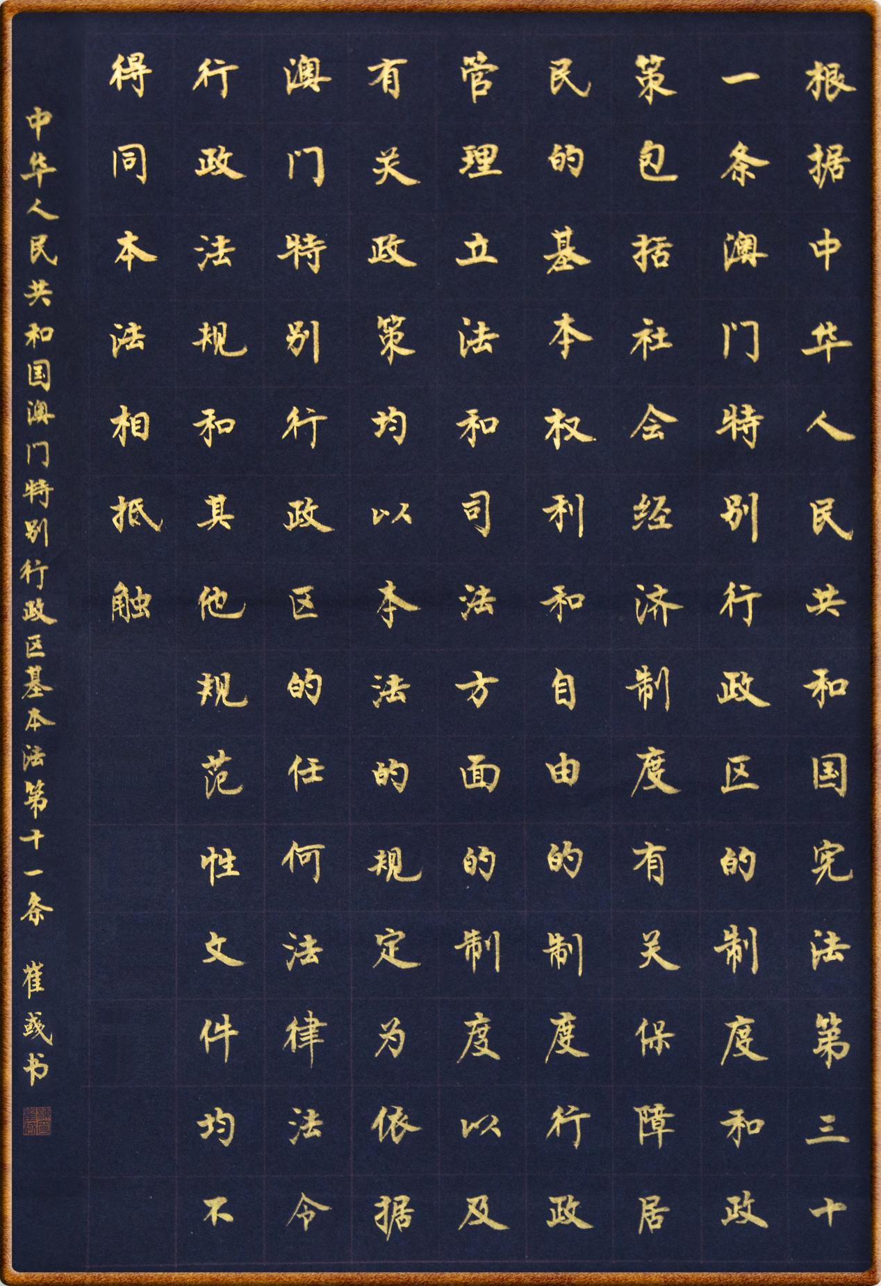 澳門基本法第十一條 根據(jù)中華人民共和國憲法第三十一條,澳門特別行政區(qū)的制度和政策,包括社會、經(jīng)濟制度,有關(guān)保障居民的基本權(quán)利和自由的制度,行政管理、立法和司法方面的制度,以及有關(guān)政策,均以本法的規(guī)定為依據(jù)。