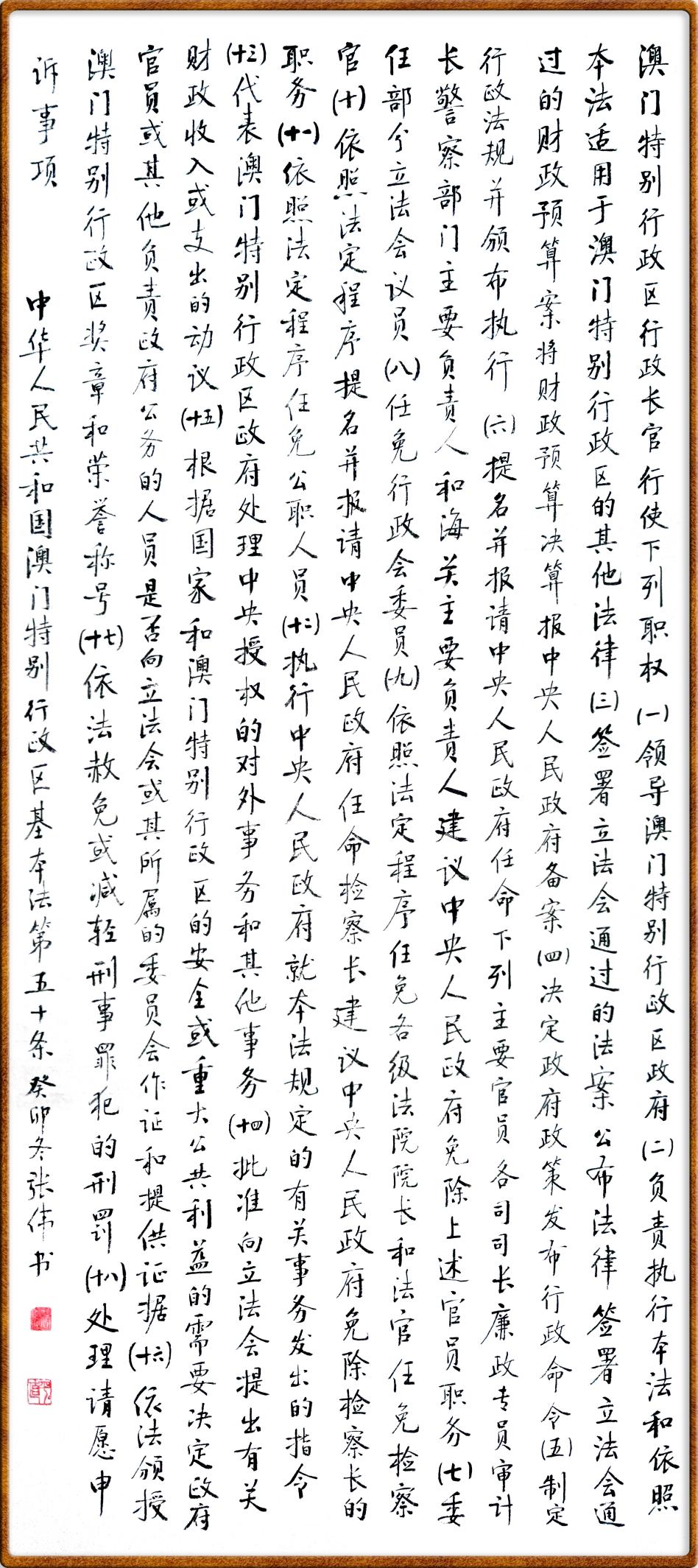 澳門基本法第五十條 澳門特別行政區(qū)行政長(zhǎng)官行使下列職權(quán):