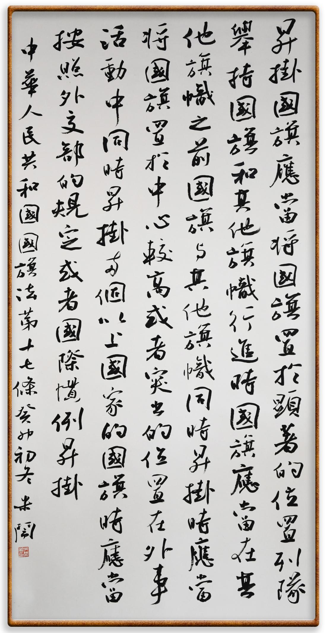 國旗法第十七條 升掛國旗,應(yīng)當(dāng)將國旗置于顯著的位置。